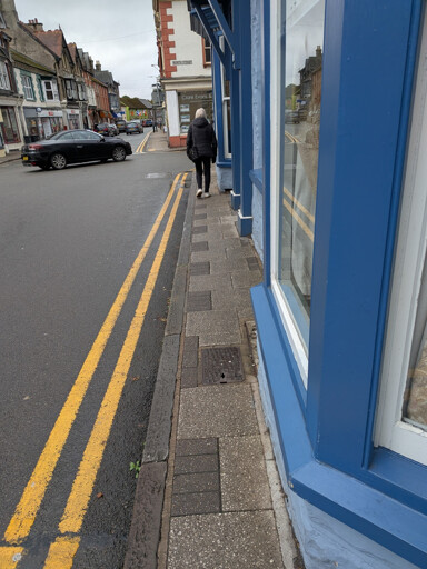 Its a very small town, not a city. The other side pavement is a fair bit wider, but obviously cars take priority. You want to see a wagon try and take this junction, they should never have been coming through the town, but theyve recently built a by pass.