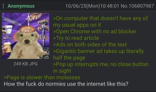 Every time i’m at someone’s house and they use “normal” tv, internet and radio i really do feel like i’m in a black mirror episode. I haven’t seen ads in over 10 years and other people just got slowely used to it. It’s honestly kinda disturbing.
