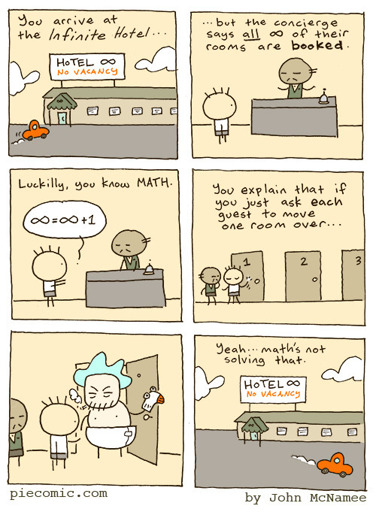 TED-Ed - The Infinite Hotel Paradox https://en.wikipedia.org/wiki/Hilbert's_paradox_of_the_Grand_Hotel