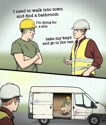 - That’s an intense level of watermarking - Assuming it’s the original one, I kinda like it. Blends into the comic. - The stuff on the van isn’t too bad but the scribbles all over the background are a lot - Oh I didn’t even notice those. - I feel weird that I noticed them but not the van. - I suppose you were understandably distracted by the emerging new turd to collect? - The grind is endless - So real