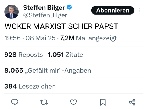 Selbst wenn nicht gibts sicher viele, die den Papst Kommunist nennen nach der letzten Aussage des Heiligen Vaters