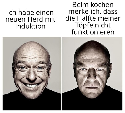 Funktionieren eigentlichvInduktionstöpfe auf normale Herde? Sozusagen der umgekehrte Fall von diesem Meme.