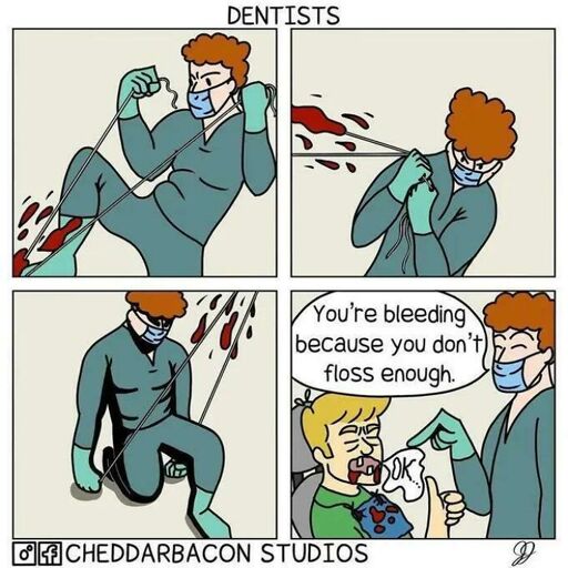 When I was a kid mom and I went to a new dentist. I was a kid and didn’t floss like I should, but this guy kept hitting my gums with the picks and tore up the inside of my mouth. When he was finished, he blamed all the blood on my lack of flossing. Thankfully, when we were driving home mom said, “well we won’t be going back there.” Apparently she also was not impressed with that guy.