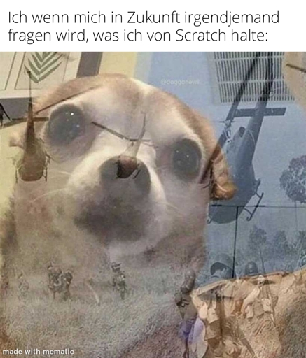 Haben bei uns aktuell einen Praktikanten, den ich und mein Arbeitskollege nächste Woche für einen halben Tag beschäftigen müssen. Ursprünglich dachten wir, dass wir den ein bisschen mit Python rum spielen lassen, bis mir aufgefallen ist, dass die Person halt 12 oder so ist. Also Planänderung, wir setzen den mal ein bisschen an scratch dran und lassen den damit irgendwie Schere-Stein-Papier bauen. Genau das habe ich heute ausprobiert und Ach du scheiße hasse ich es irgendwas mit scratch zu machen. Ich dachte ja schon Python wäre kacke, aber das ist auf einem ganz anderen Level Scheiße. Ich hoffe mal, dass ich hiernach dieses Folterinstrument für Programmierer*innen nie wieder anfassen muss.