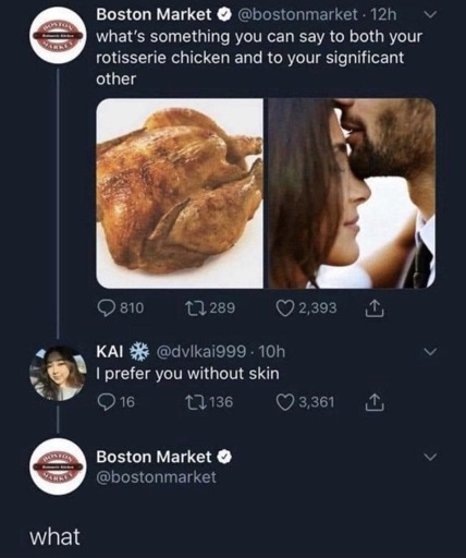 I really wish that guy from Boston Market hadn’t fucked you before dinner.