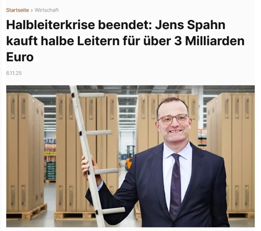 Fake. Wenn das echt wäre, hätte der Eigentümer des Leiternherstellers noch eine großzügige Spende für Spahns Wahlkampf entrichten müssen. Als ob Spahn irgendwas ohne Gegenleistung macht…