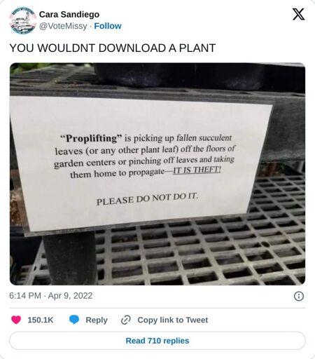 My grandfather, he had a big garden with lots of plants, had been banned from most of the garden stores within a 20 mile radius of his home because he was known to pick leaves of the plants and make saplings out of them.