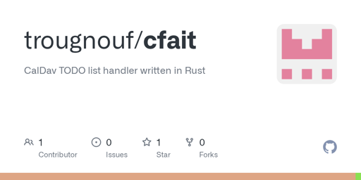 Hello all, I just released v0.1.7 of Cfait, a CalDAV task / TODO manager with most of the features I’ve always wanted and I’m starting to find it usable and enjoyable so I think it’s time to announce it :) I’ve finally starting organizing my todo list the way it should always have been.