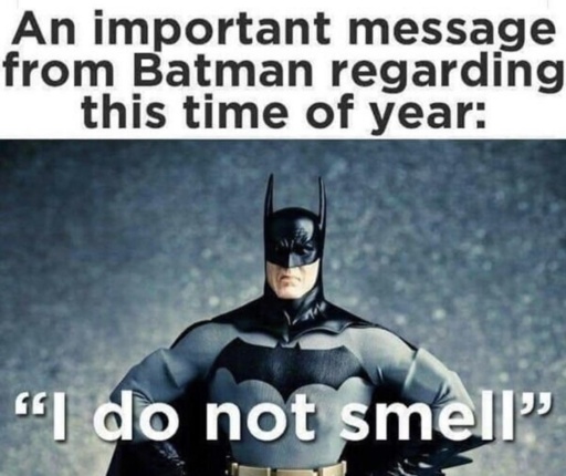 He probably does smell with all the stuff he gets up to. I’m sure the batsuit doesn’t exactly smell of roses.