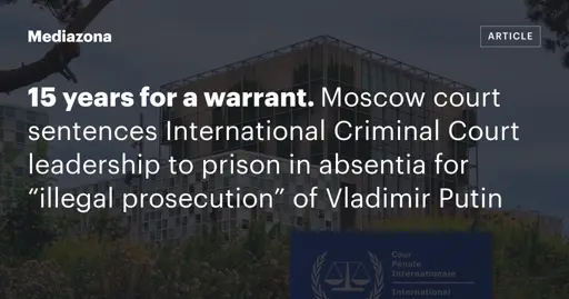 arrow-up1318arrow-down1external-link15 years for a warrant. Moscow court sentences International Criminal Court leadership to prison in absentia for “illegal prosecution” of Vladimir Putinen.zona.mediaKing@sh.itjust.works to Not The Onion@lemmy.worldEnglish · 2 days agomessage-square13linkfedilink