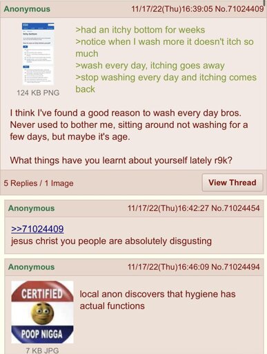 arrow-up1669arrow-down1imageAnon discovers hygienesh.itjust.works🍹Early to RISA 🧉@sh.itjust.worksM to Greentext@sh.itjust.works · 2 months agomessage-square55linkfedilink