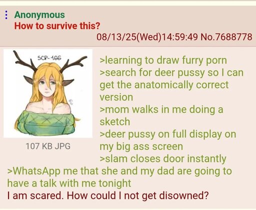 tfw you live with your parents, the door isn’t locked (could be dumbness, or parents being shitty about locked doors, as seen by mother entering the room without knocking), your screen is facing the door, it’s daytime, your mom is at home a lot and doesn’t knock and you’re drawing extra-spicy porn