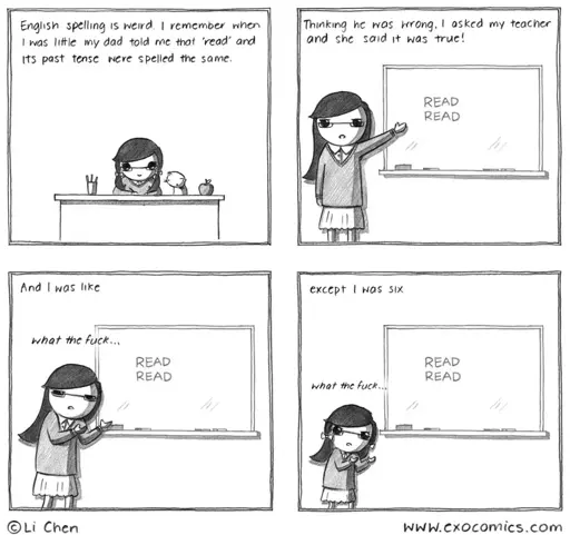 We should be consistent and say “readed”. While we’re on the subject, why isn’t the past tense of go “goed”?