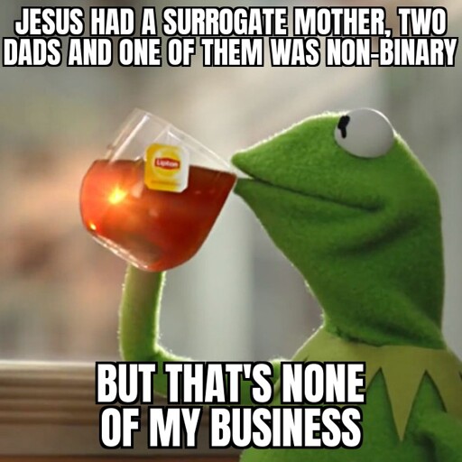 Unless you mean Joseph is non-binary? In which case, again, no. He’s just a cuckold who didn’t ever consummate his marriage to Mary, and they both died as virgins. Which is honestly the most unbelievable part of the whole story.