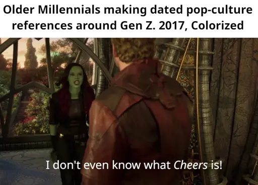 Uh, Cheers is GenX, not millenials. 1982-93. Not a lot of babies to 10yo watching Cheers.